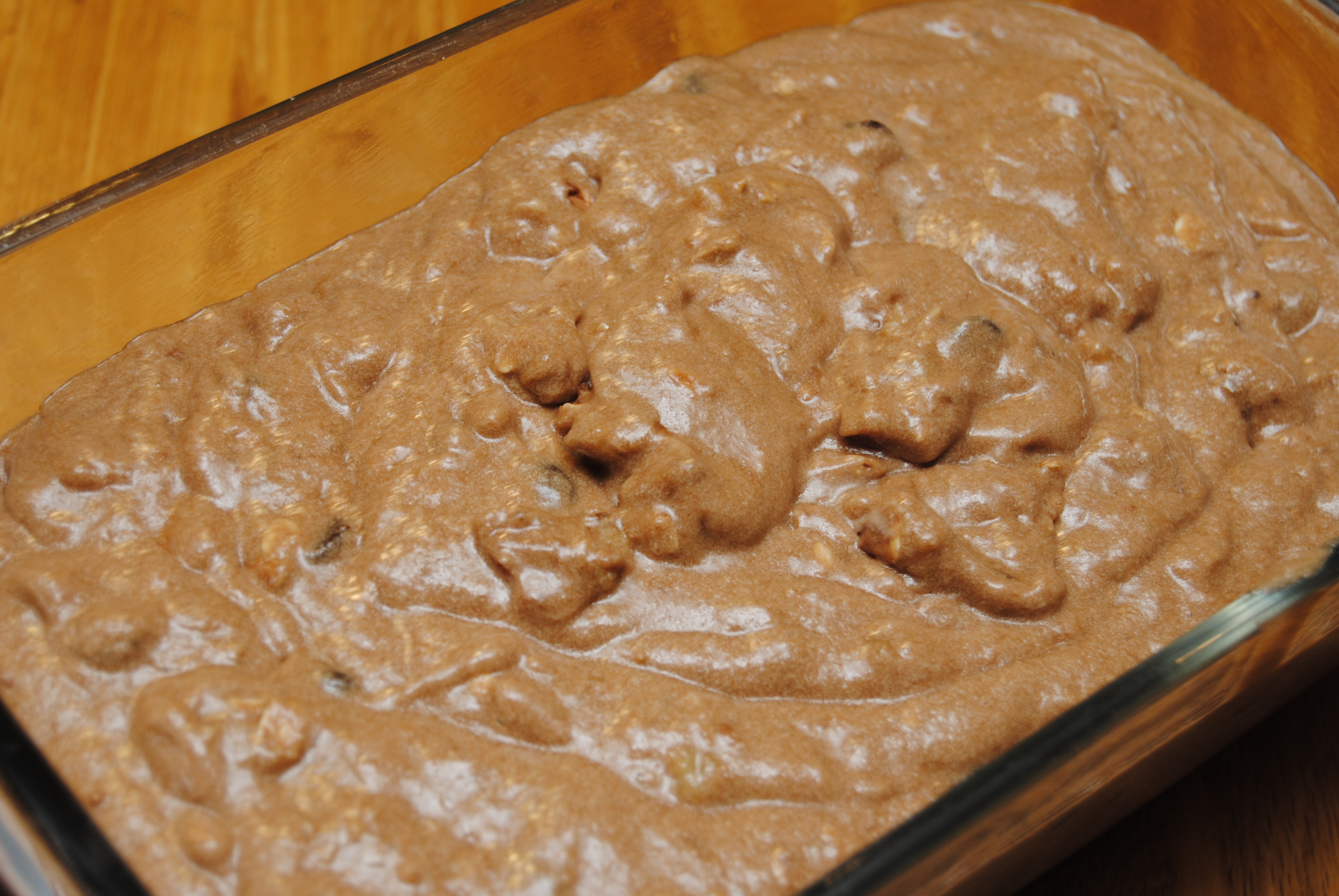 6.) Pour batter into loaf pan and cook for 60 minutes, or until a toothpick inserted into the middle comes out clean. Let cool for 15 minutes before cutting.
